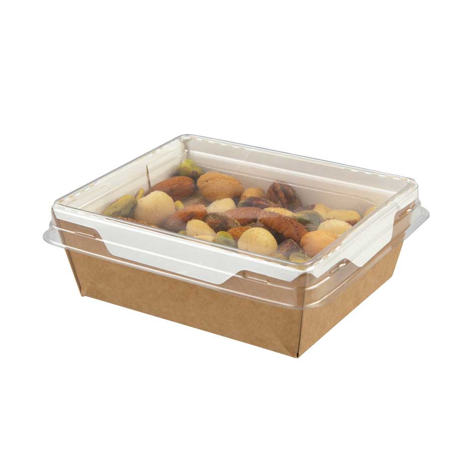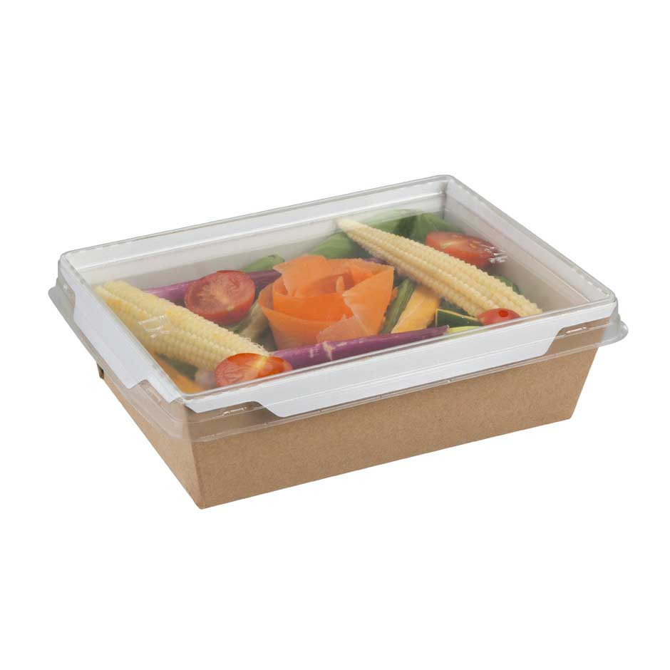 Gama ecológica de productos para llevar. Bandejas con tapa bisagra de polipropileno, tarrinas y bandejas de aluminio.